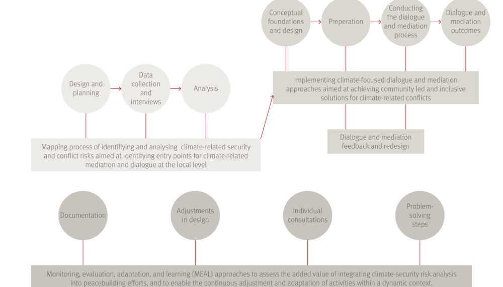 The following illustration provides a simple outline of the main steps we suggest in this toolkit to address and prevent conflict through the integration of climate and environmental issues into locally led dialogue and mediation processes: